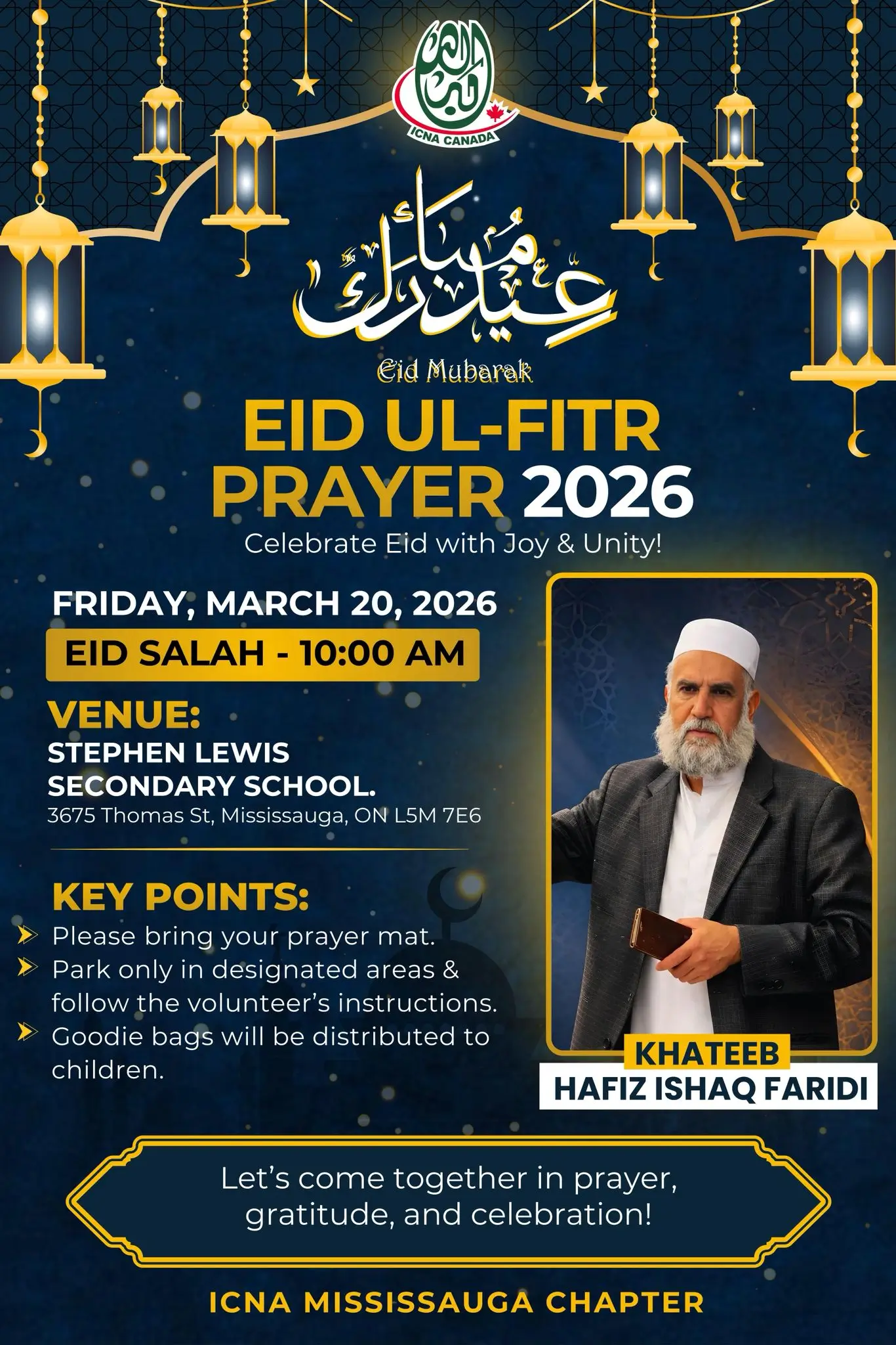 | 2nd | 10:00 am | 3675 Thomas St, Missisauga, ON L5M 7E6 | Hafiz Ishaq Faridi |
